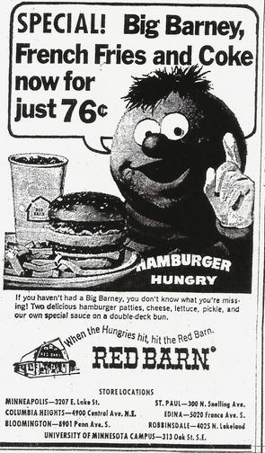 Red Barn was a nationally-franchised fast food chain with restaurants that looked like red barns and featured hamburgers, chicken and french fries, catering to kids and families with advertising featuring Muppet-type characters and the slogan, “When the hungries hit…hit the Red Barn.” There was already a Red Barn outlet near campus on Southeast Oak Street.